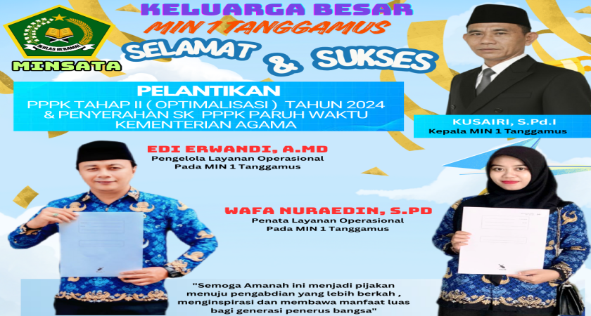 SELAMAT DAN SUKSES ATAS PELANTIKAN PPPK OPTIMALISASI TAHUN 2024 DAN PENYERAHAN SK PPPK PARUH WAKTU PADA MIN 1 TANGGAMUS